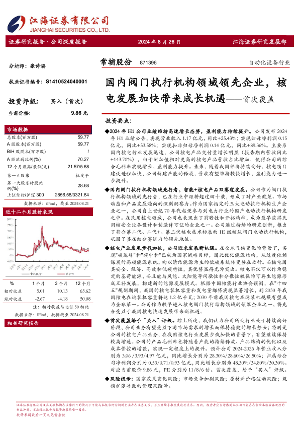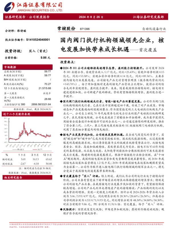 【江海证券】【20240826】国内阀门执行机构领域领先企业,核电发展加快带来成长机遇——首次覆盖-29页