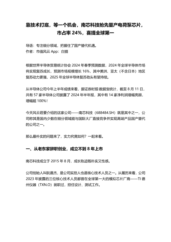【市值风云 App】【20240827】靠技术打底,等一个机会,南芯科技抢先量产电荷泵芯片,市占率24%,喜提全球第一-20页