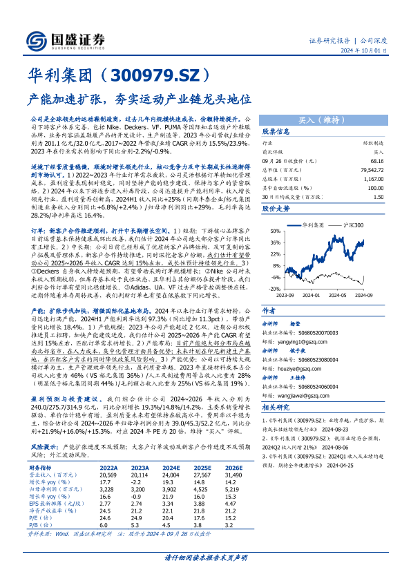 【国盛证券】【20241001】华利集团:产能加速扩张,夯实运动产业链龙头地位-18页
