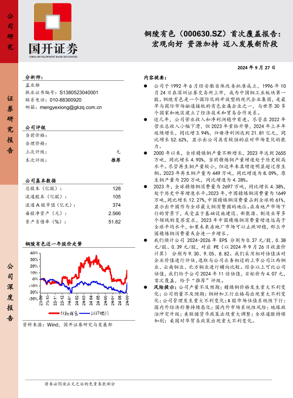 【国开证券】【20240927】铜陵有色(000630.SZ)首次覆盖报告:宏观向好资源加持迈入发展新阶段-22页