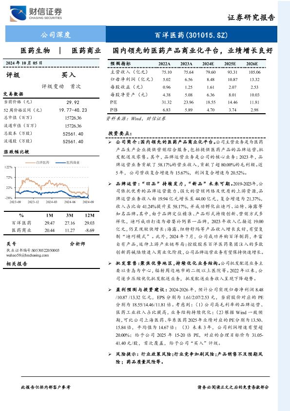 【财信证券】【20241005】国内领先的医药产品商业化平台,业绩增长良好-26页