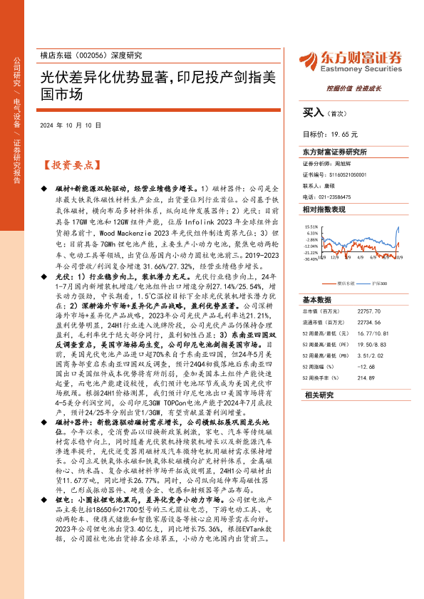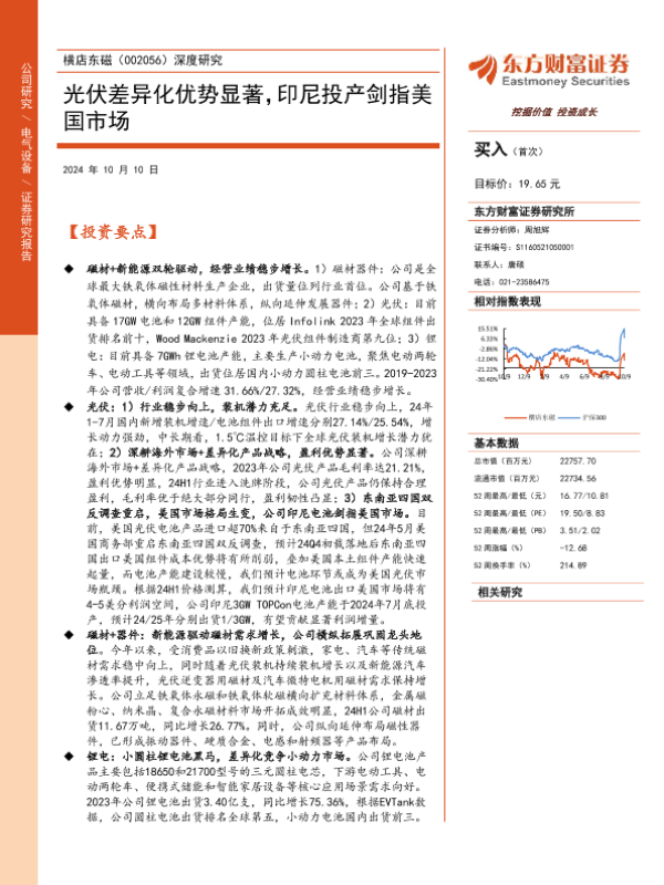 【东方财富证券】【20241010】横店东磁(002056)深度研究:光伏差异化优势显著,印尼投产剑指美国市场-29页