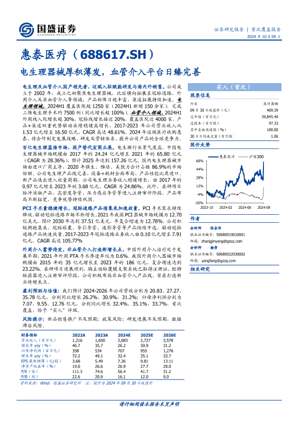 【国盛证券】【20241009】惠泰医疗-688617.SH-电生理器械厚积薄发,血管介入平台日臻完善-43页