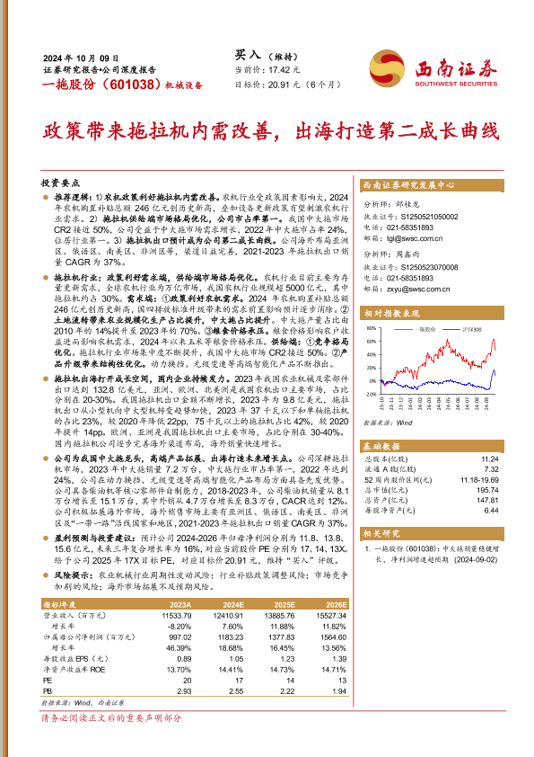 【西南证券】【20241009】政策带来拖拉机内需改善,出海打造第二成长曲线-41页