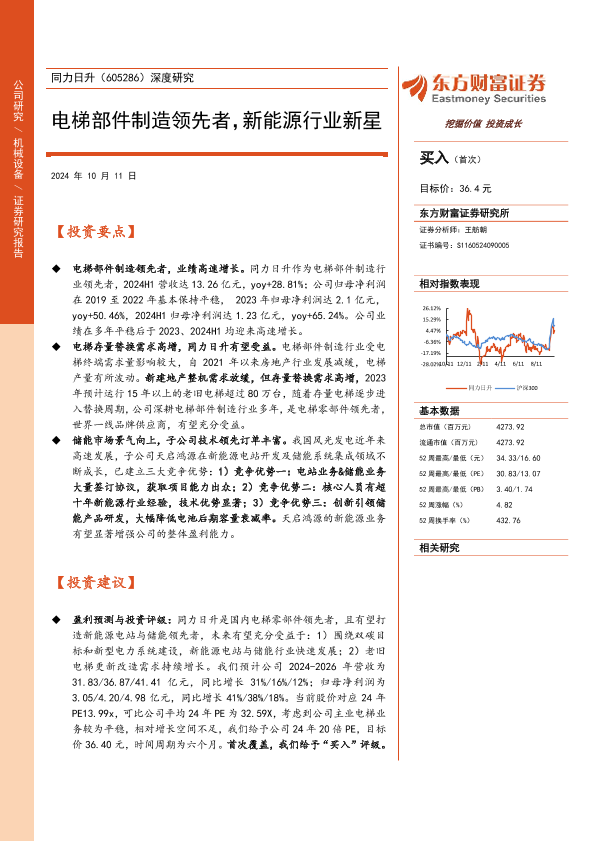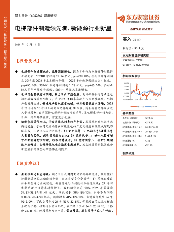 【东方财富证券】【20241011】20241011-东方财富证券-同力日升-605286.SH-深度研究:电梯部件制造领先者,新能源行业新星-28页