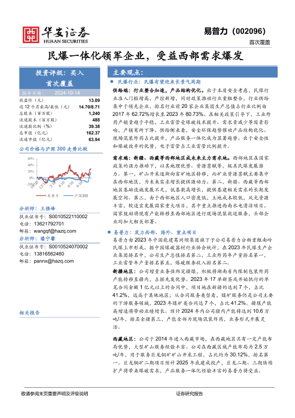 【华安证券】【20241014】民爆一体化领军企业,受益西部需求爆发-29页