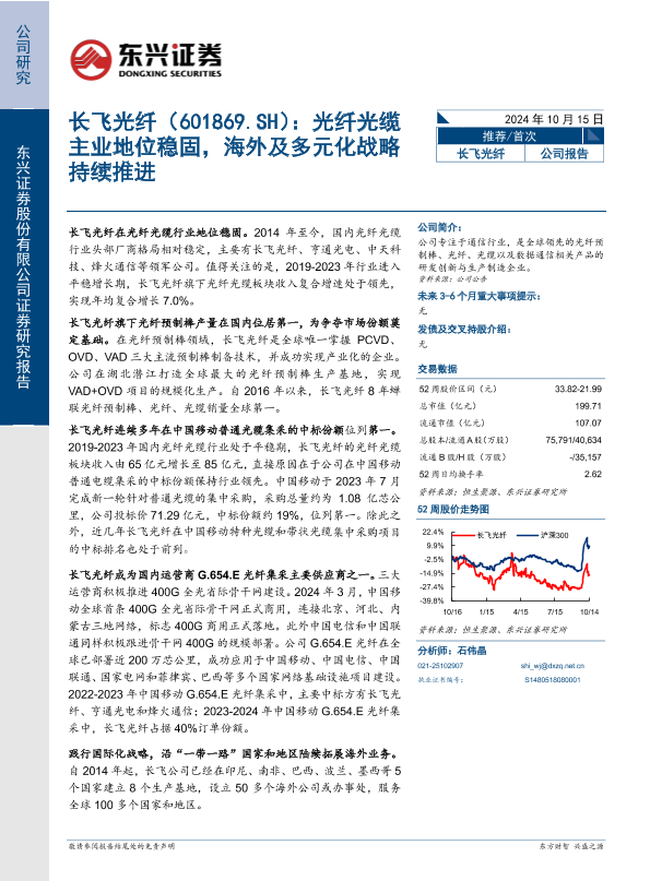 【东兴证券】【20241015】长飞光纤:光纤光缆主业地位稳固,海外及多元化战略持续推进-17页