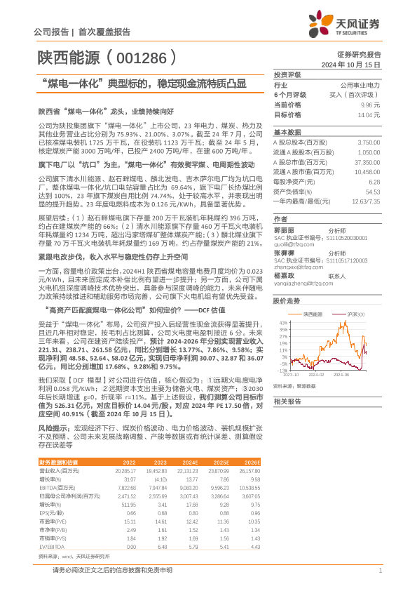 【天风证券】【20241015】20241015-天风证券-陕西能源-001286.SZ-“煤电一体化”典型标的,稳定现金流特质凸显-18页