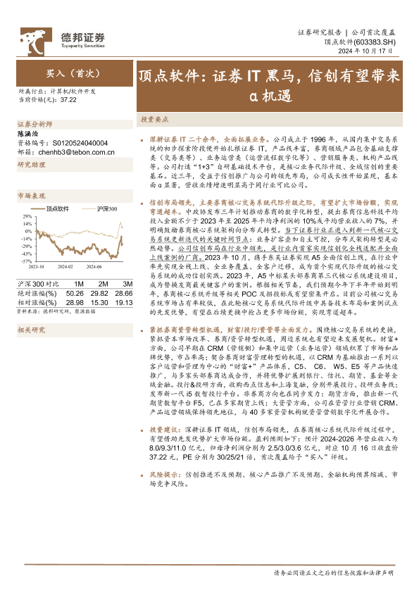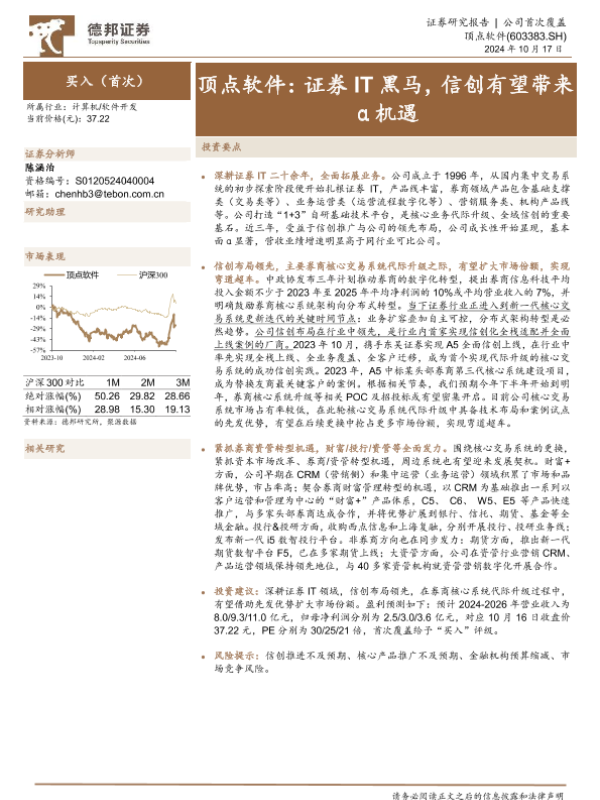 【德邦证券】【20241017】顶点软件:证券IT黑马,信创有望带来α机遇-29页