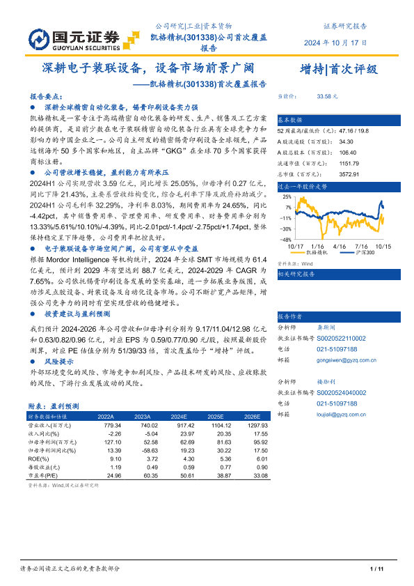 【国元证券】【20241017】凯格精机首次覆盖报告:深耕电子装联设备,设备市场前景广阔-11页