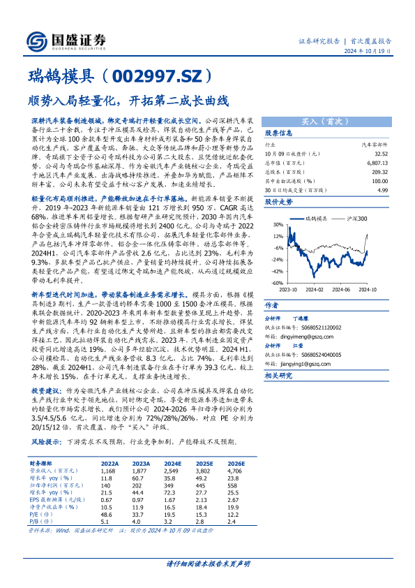 【国盛证券】【20241019】瑞鹄模具-顺势入局轻量化,开拓第二成长曲线-16页