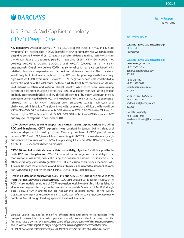 【Barclays Capital Inc.】【20220512】美国中小型生物技术公司:CD70深潜-41页
