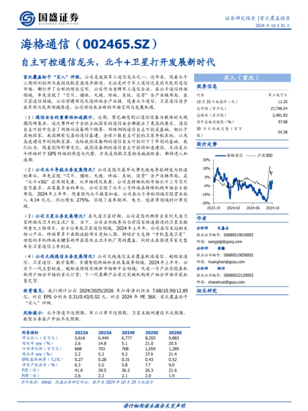 【国盛证券】【20241031】海格通信-自主可控通信龙头,北斗+卫星打开发展新时代-20页