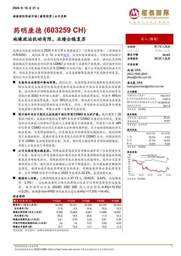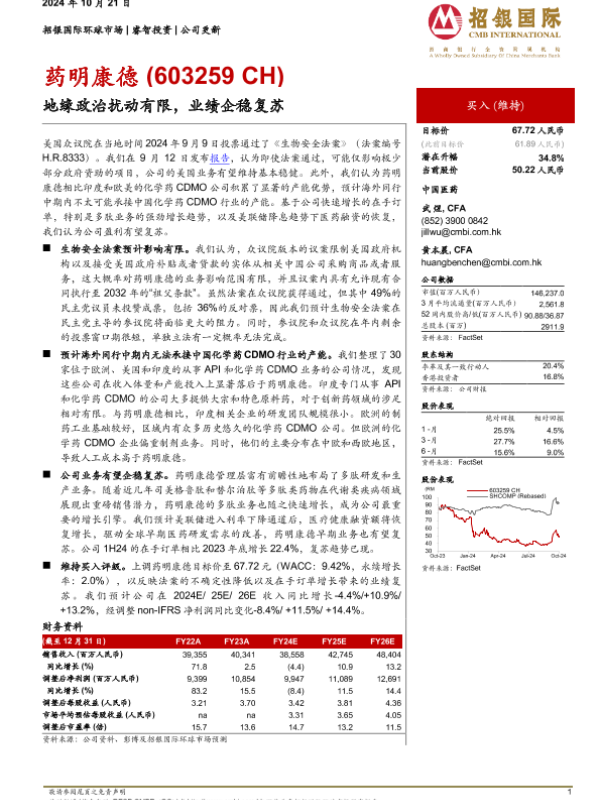 【招银国际】【20241021】药明康德-603259.SH-地缘政治扰动有限,业绩企稳复苏-27页