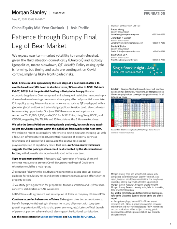 【Morgan Stanley】【20220510】摩根士丹利-亚太地区投资策略-耐心度过熊市坎坷的最后一段-38页