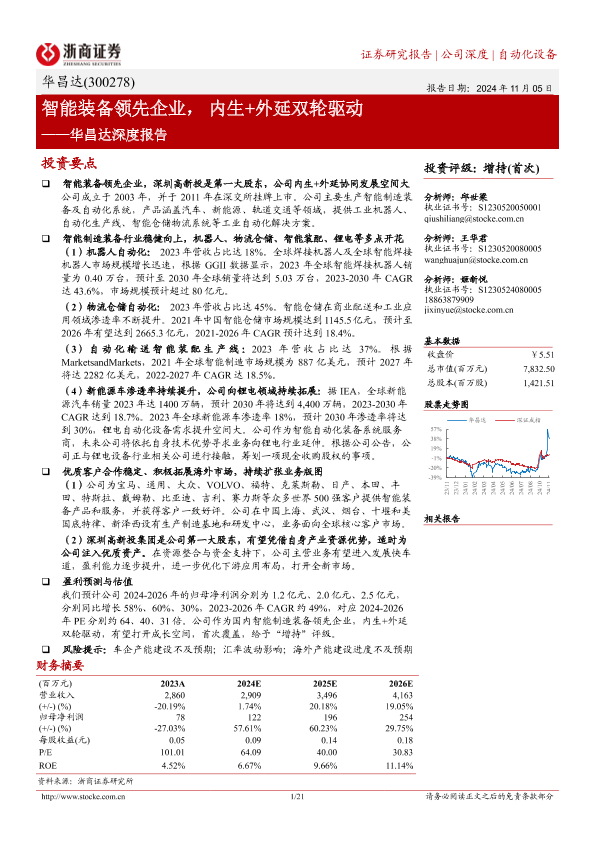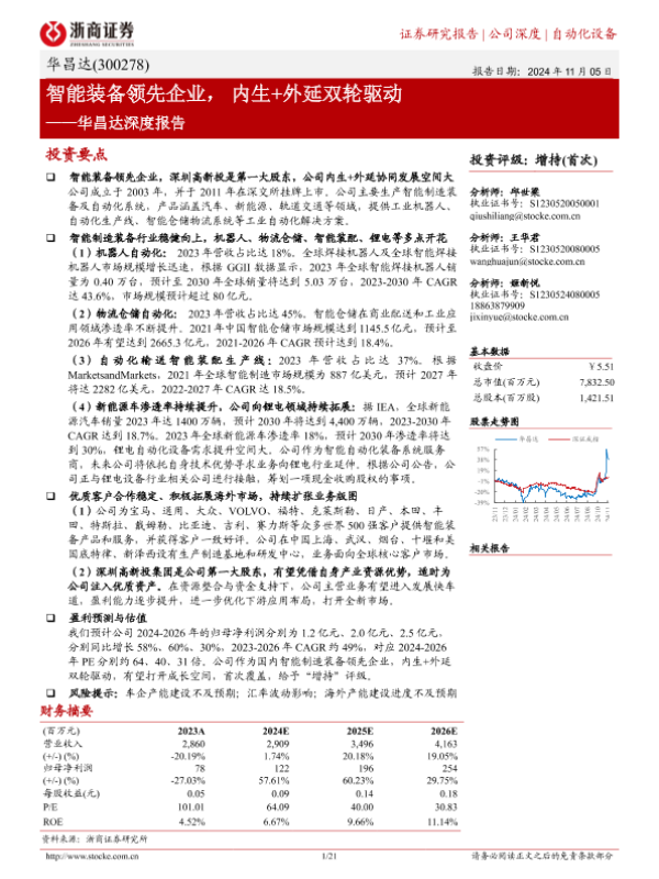 【浙商证券】【20241105】华昌达深度报告:智能装备领先企业,内生+外延双轮驱动-21页