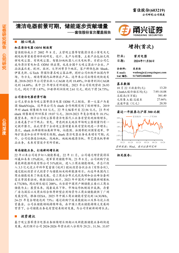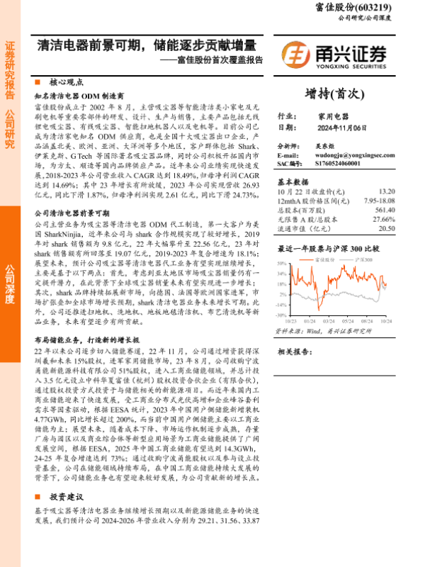 【甬兴证券】【20241106】富佳股份首次覆盖报告:清洁电器前景可期,储能逐步贡献增量-20页
