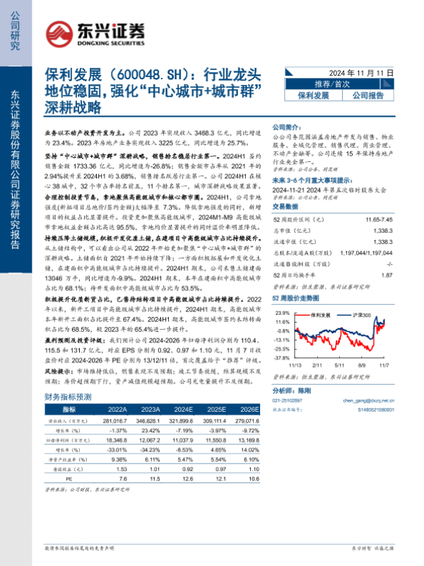 【东兴证券】【20241111】保利发展:行业龙头地位稳固,强化“中心城市+城市群”深耕战略-27页