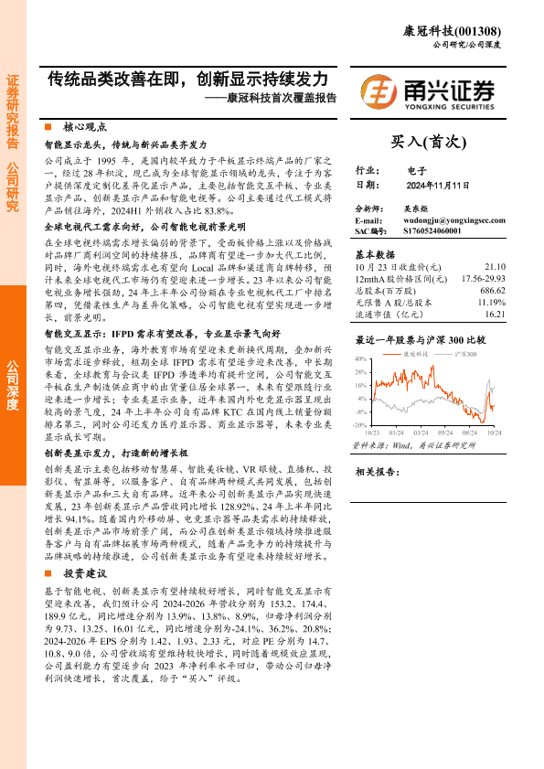 【甬兴证券】【20241111】康冠科技首次覆盖报告:传统品类改善在即,创新显示持续发力-26页