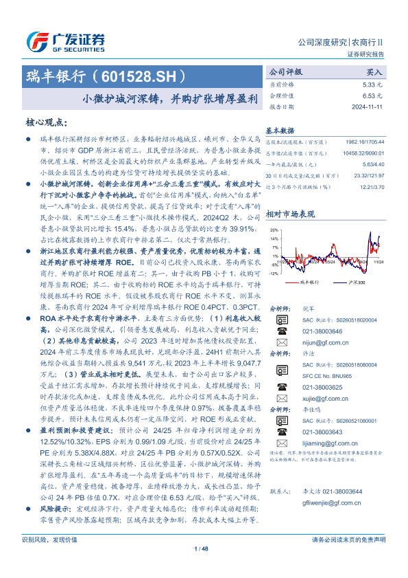 【广发证券】【20241111】瑞丰银行(601528.SH)小微护城河深铸,并购扩张增厚盈利-48页