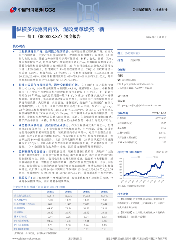 国际化 工程机械 柳工 混改 盈利能力