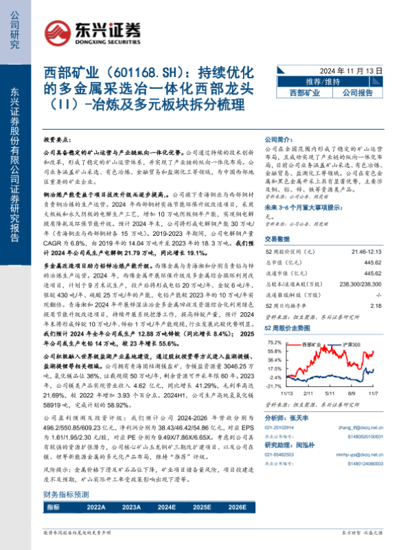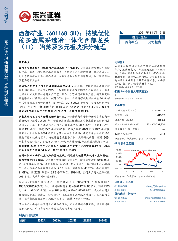【东兴证券】【20241113】西部矿业:持续优化的多金属采选冶一体化西部龙头(II)-冶炼及多元板块拆分梳理-18页