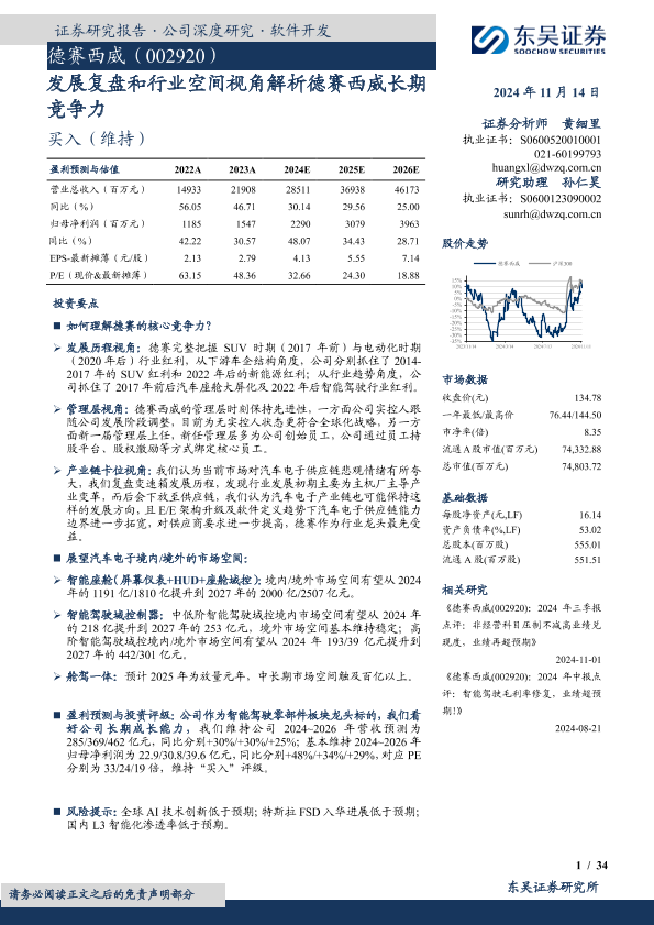 【东吴证券】【20241114】发展复盘和行业空间视角解析德赛西威长期竞争力-34页