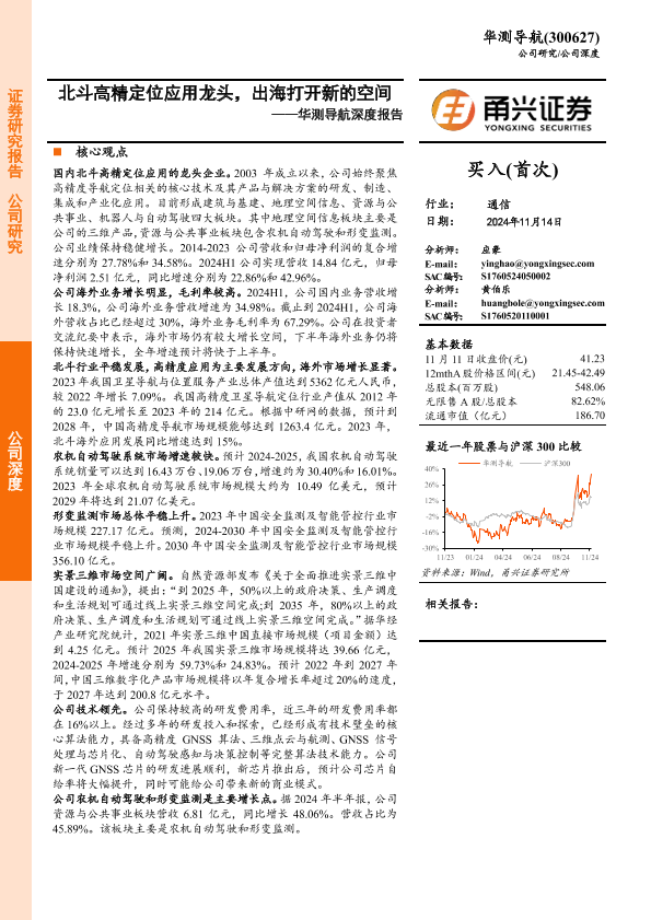 【甬兴证券】【20241114】华测导航深度报告:北斗高精定位应用龙头,出海打开新的空间-25页