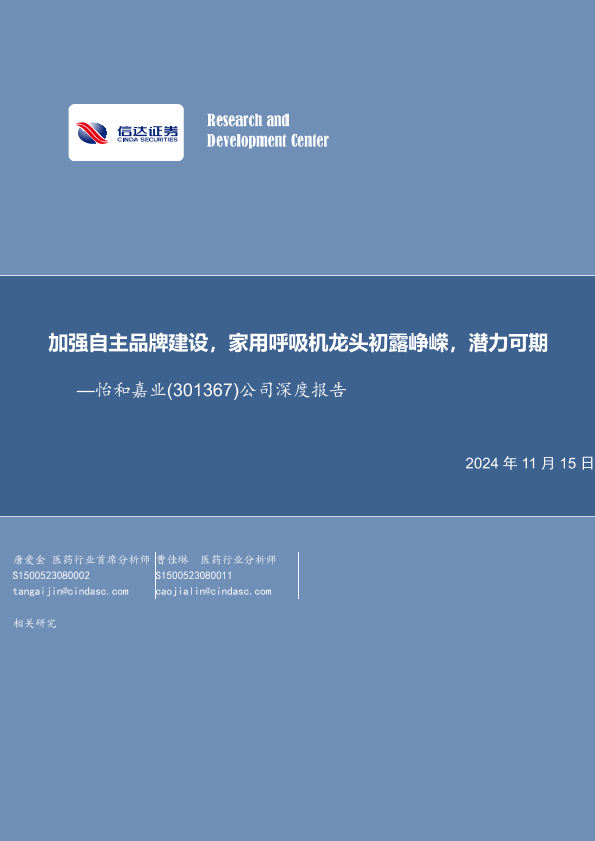 【信达证券】【20241115】加强自主品牌建设,家用呼吸机龙头初露峥嵘,潜力可期-30页