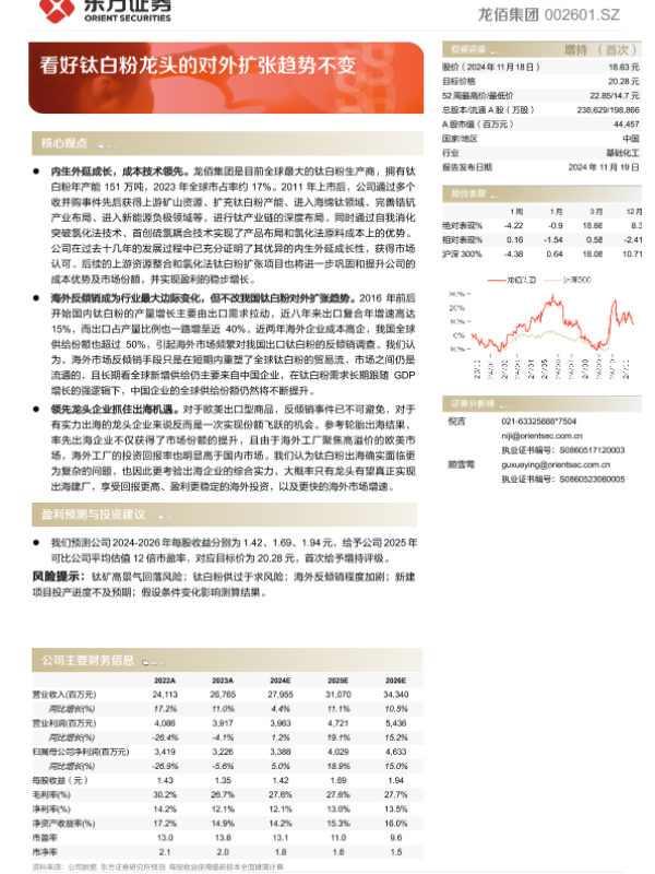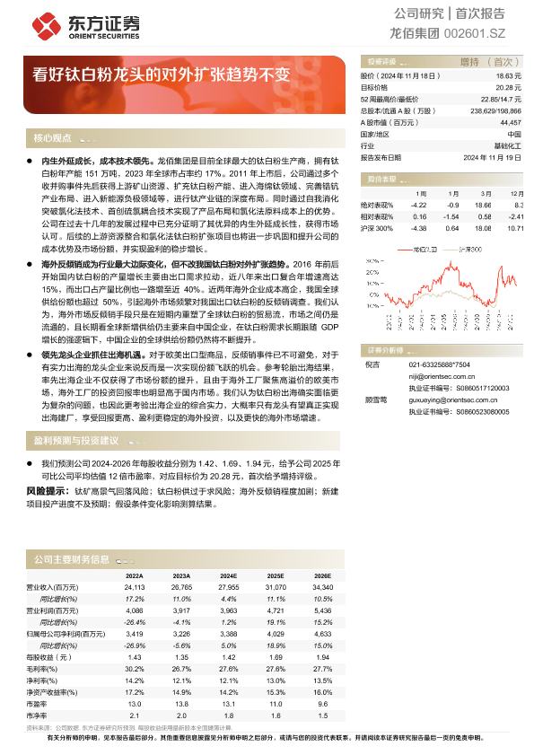 【东方证券】【20241119】20241119-东方证券-龙佰集团-002601.SZ-看好钛白粉龙头的对外扩张趋势不变-27页