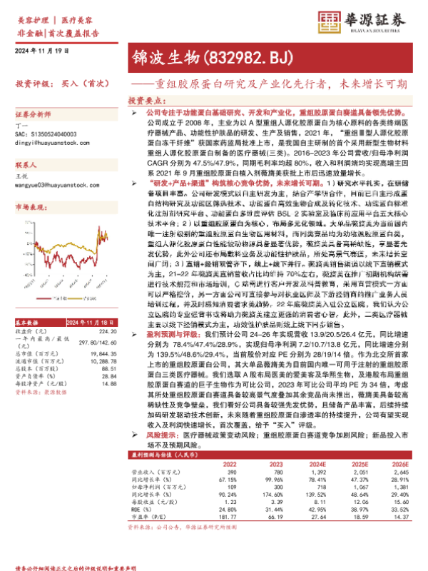 【华源证券】【20241119】重组胶原蛋白研究及产业化先行者,未来增长可期-21页