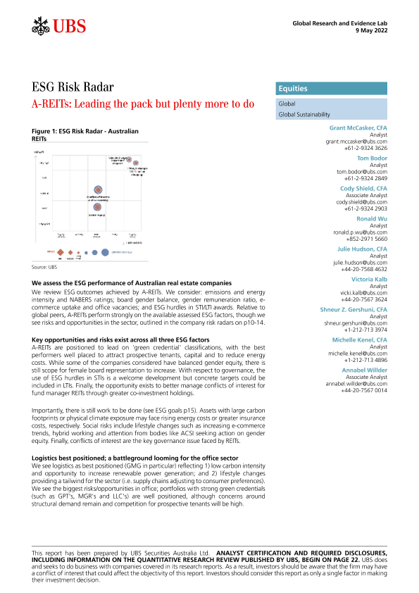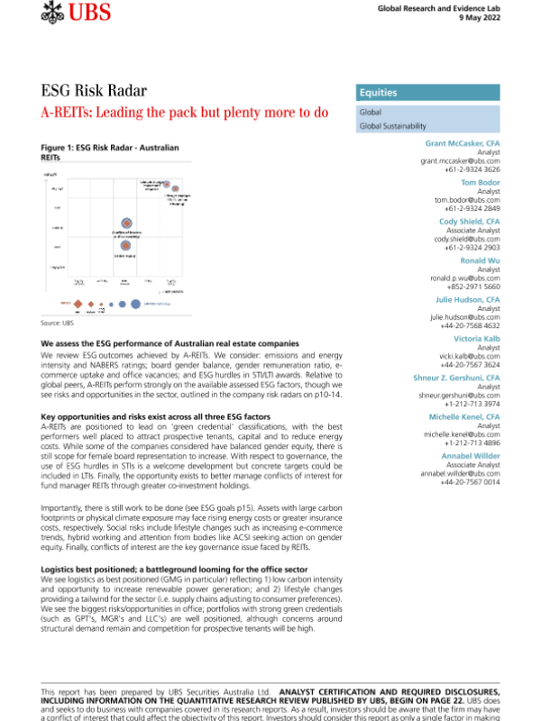 【瑞银】【20220509】瑞银-全球投资策略-ESG风险雷达:引领潮流,但还有很多事情要做-26页