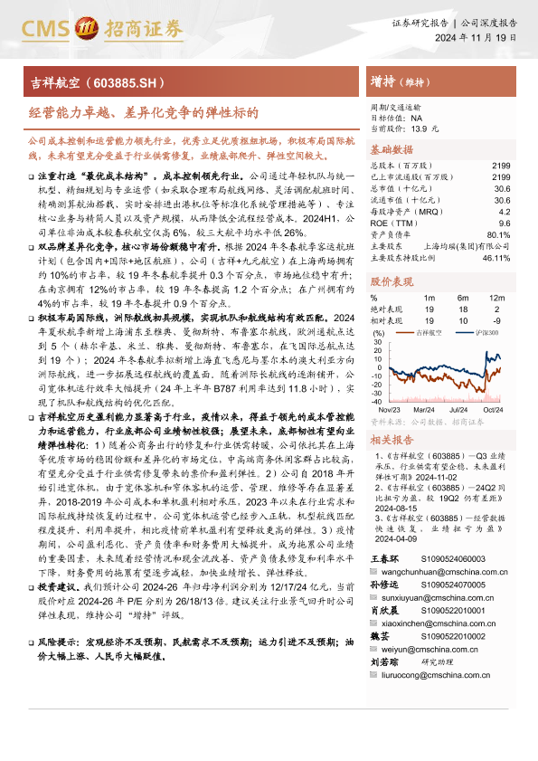 业绩弹性 国际航线 差异化竞争 成本控制 航空运输