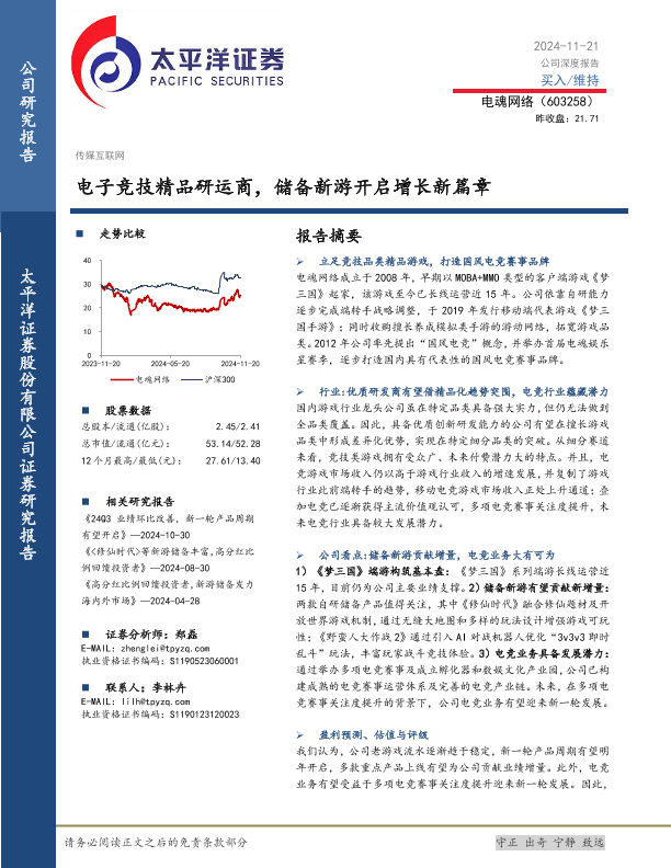 【太平洋证券】【20241121】电子竞技精品研运商,储备新游开启增长新篇章-29页