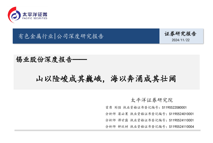 【太平洋证券】【20241122】锡业股份深度报告:山以险峻成其巍峨,海以奔涌成其壮阔-30页