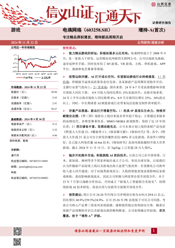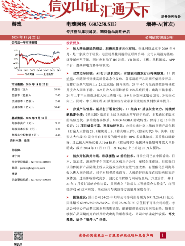 AI技术 新品周期 海外市场 游戏行业 电魂网络