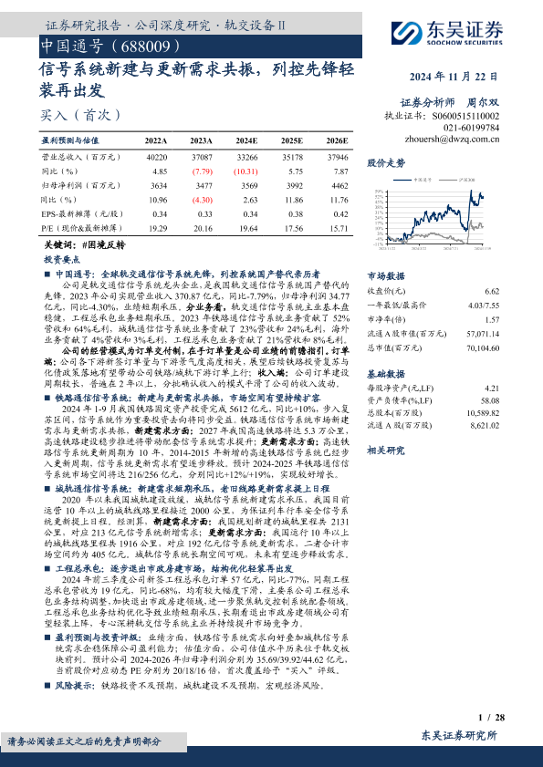 【东吴证券】【20241122】信号系统新建与更新需求共振,列控先锋轻装再出发-28页