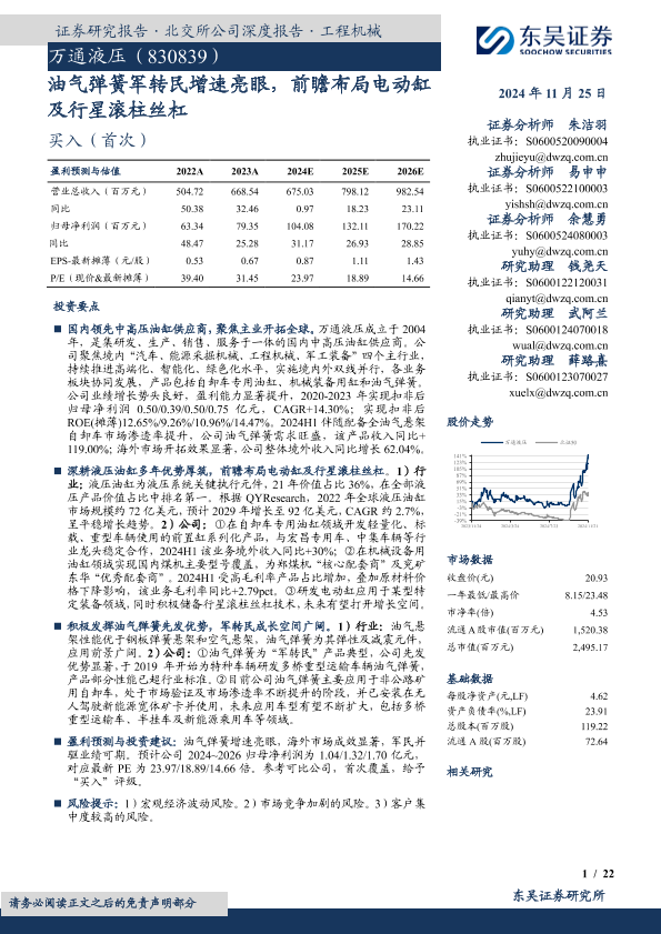【东吴证券】【20241125】油气弹簧军转民增速亮眼,前瞻布局电动缸及行星滚柱丝杠-22页
