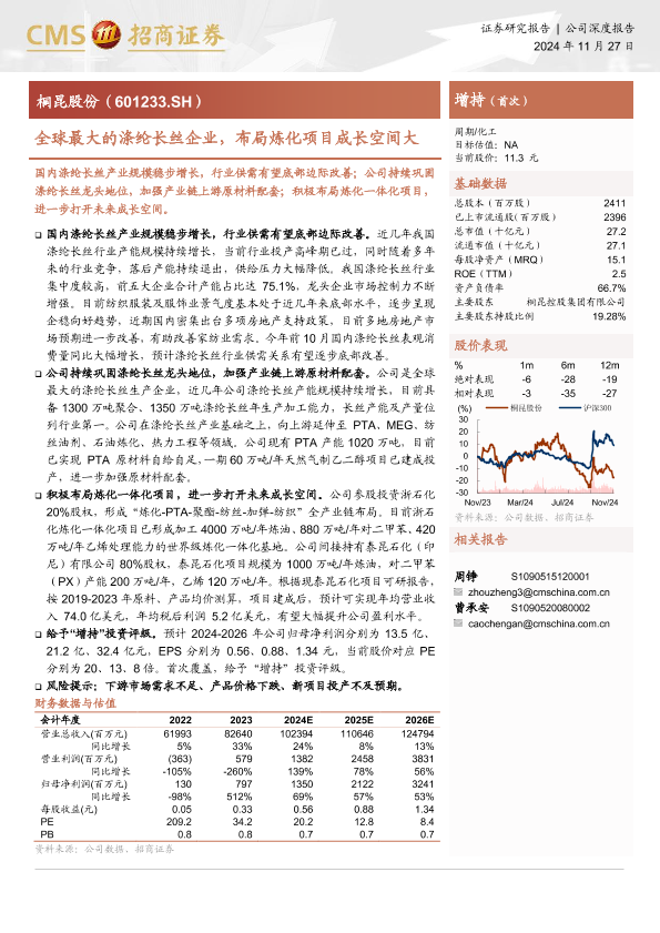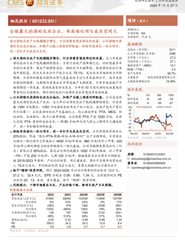 【海通证券】【20241127】全球最大的涤纶长丝企业,布局炼化项目成长空间大-20页