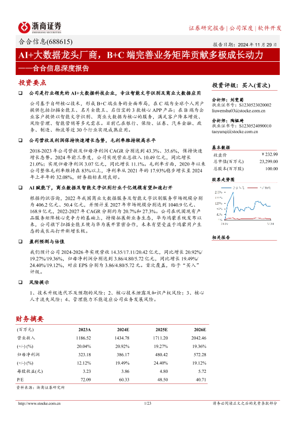 【浙商证券】【20241129】合合信息深度报告:AI+大数据龙头厂商,B+C端完善业务矩阵贡献多极成长动力-23页