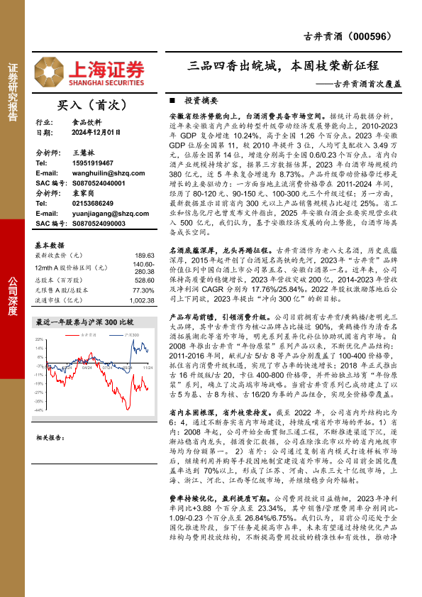 【上海证券】【20241201】古井贡酒首次覆盖:三品四香出皖城,本固枝荣新征程-26页