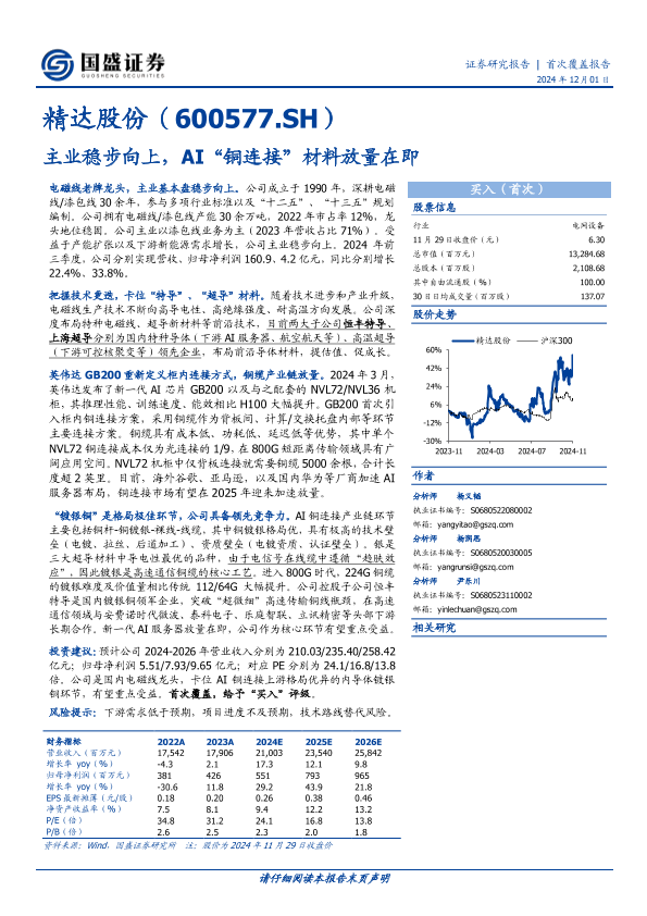 【国盛证券】【20241201】精达股份:主业稳步向上,AI“铜连接”材料放量在即-30页