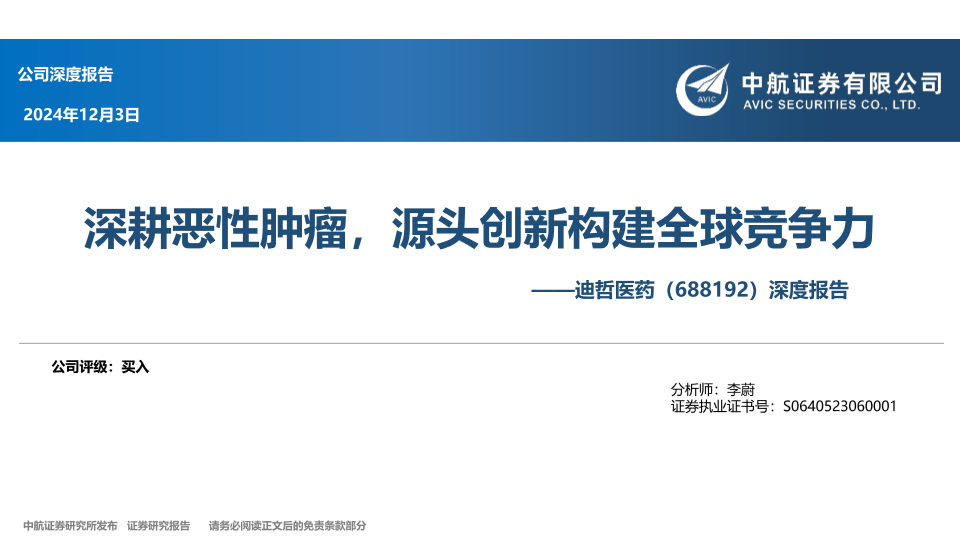 【中航证券】【20241203】深耕恶性肿瘤,源头创新构建全球竞争力-57页
