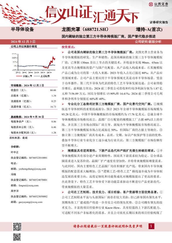 【山西证券】【20241203】龙图光罩-688721.SH-国内稀缺的独立第三方半导体掩模版厂商,国产替代稳步推进-32页