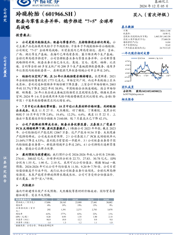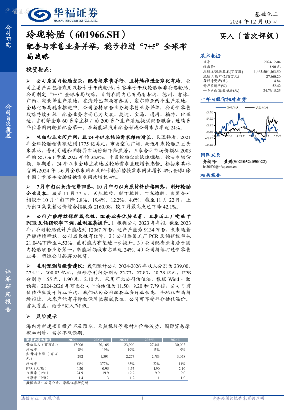 【华福证券】【20241205】玲珑轮胎:配套与零售业务并举,稳步推进“7+5”全球布局战略-26页