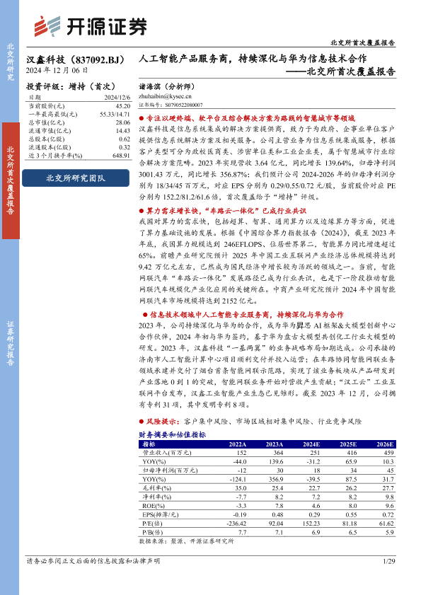 【开源证券】【20241206】北交所首次覆盖报告:人工智能产品服务商,持续深化与华为信息技术合作-29页
