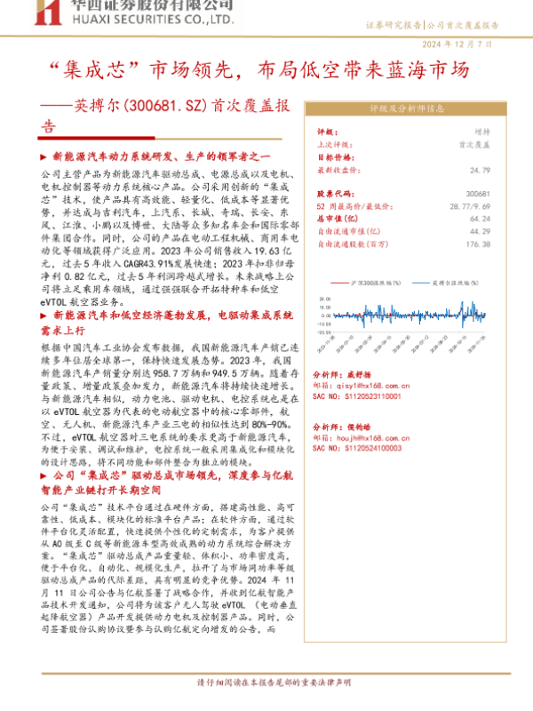 【华西证券】【20241207】“集成芯”市场领先,布局低空带来蓝海市场——英搏尔(300681.SZ)首次覆盖报告-31页