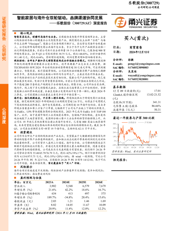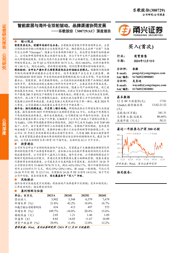 【甬兴证券】【20241210】乐歌股份(300729.SZ)深度报告:智能家居与海外仓双轮驱动,品牌渠道协同发展-33页