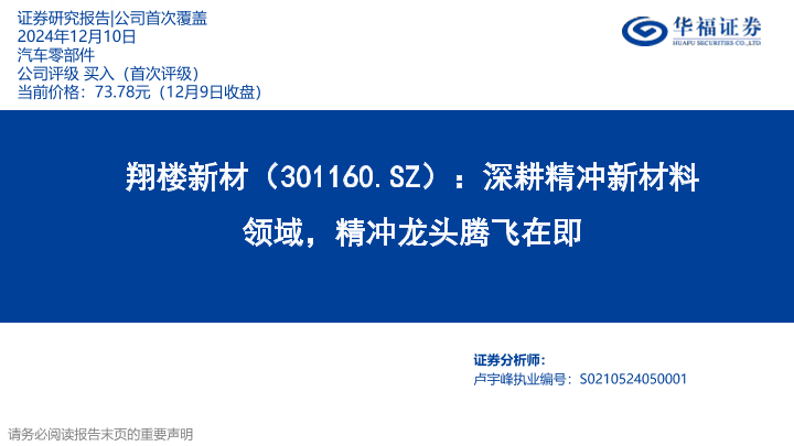 【华福证券】【20241210】翔楼新材:深耕精冲新材料领域,精冲龙头腾飞在即-37页