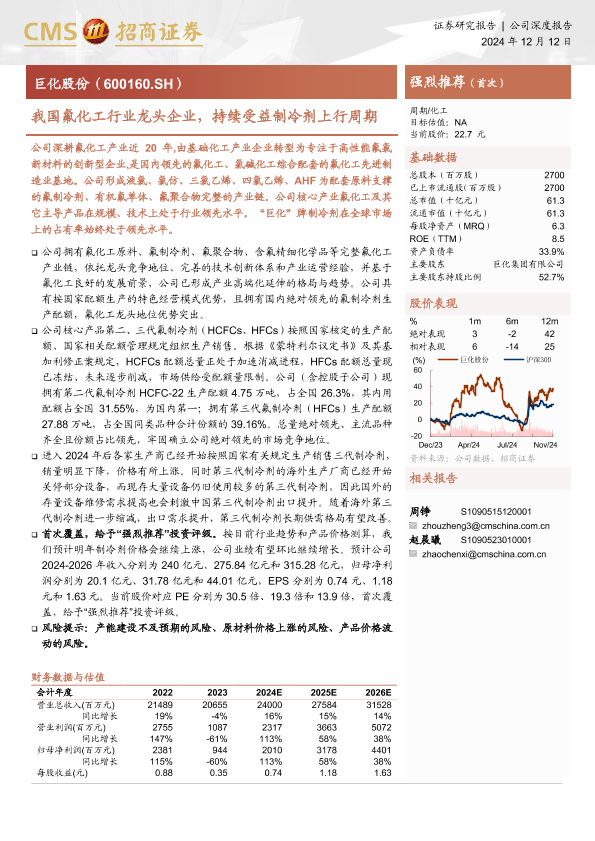 【海通证券】【20241212】我国氟化工行业龙头企业,持续受益制冷剂上行周期-32页